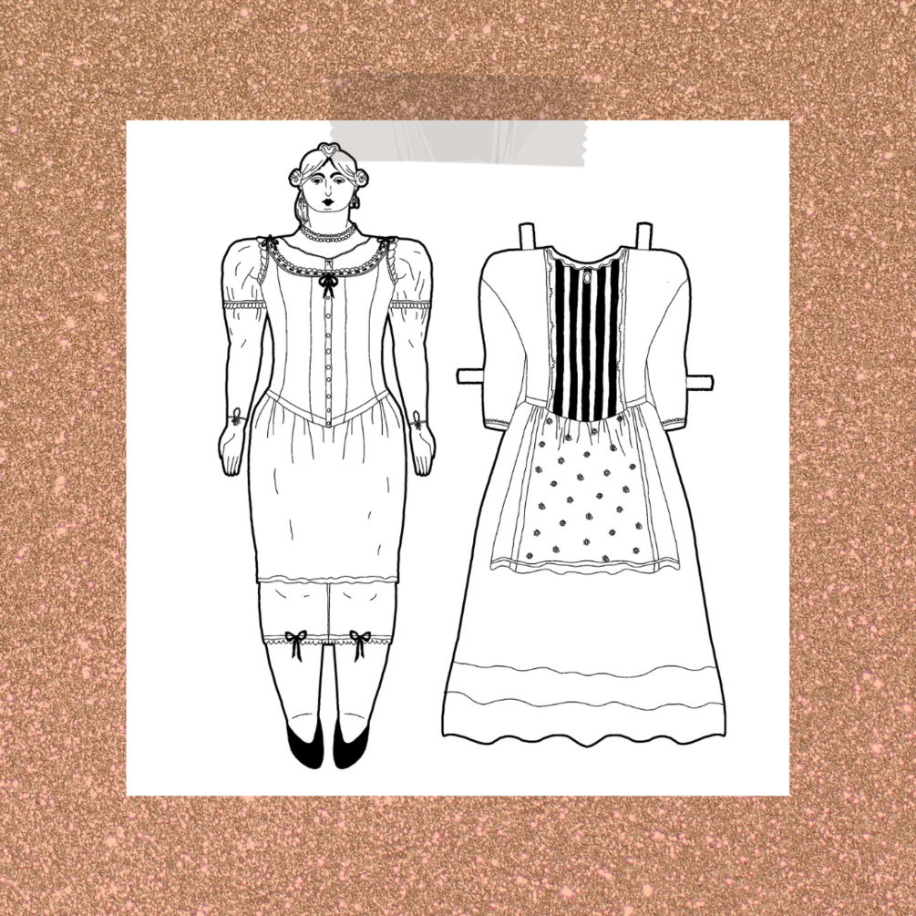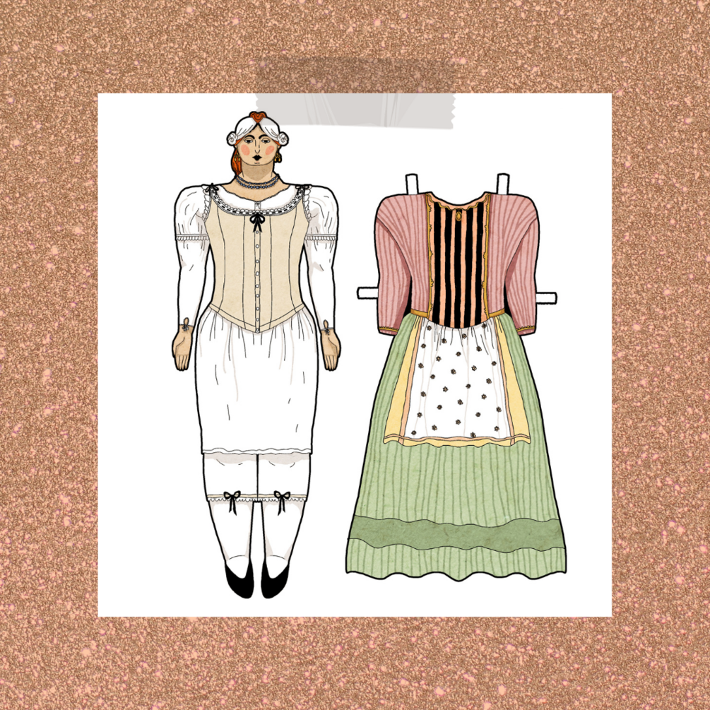 "Miriam paper doll" Set (1 page a4): one doll and one dress based on the 19th century Ashkenazi Jewish traditional clothes.